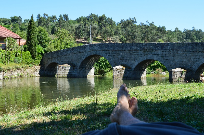 Depois de almoço tinha ido com as minhas duas companheiras de viagem, a que outras se juntaram, para refrescar-me junto do rio Ovelha, mesmo defronte da ponte românica. Eu estiquei-me ali à sombra, onde se estava mesmo bem, onde podia era tirar uma bela sesta, embalado pelas conversas das senhoras. Mas o que é bom acaba rápido e já eram horas de partir de regresso.